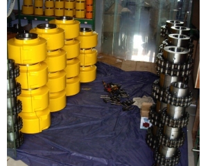 鏈條聯軸器具有結構簡單(四個件組成)、裝拆方便、拆卸時不用移動被聯接的兩軸、尺寸緊湊、質量輕、有 補償能力、對安裝精度要求不高、工作、壽命較長、成本較低等優點。滾子鏈聯軸器 可用于紡織、農機、起重運輸、工程、礦山、輕工、化工等機械的軸系傳動,適用于高溫、潮濕和多塵工況環境,不適用高速、有劇烈沖擊載荷和傳遞軸向力的場合,鏈條聯軸器應在良好的潤滑并有防護罩的條件下工作。鏈條聯軸器是利用公用的鏈條,同時與兩個齒數相同的并列鏈輪嚙合,不同結構型式的鏈條聯軸器主要區別是采用不同的鏈條,常見的有雙排滾子鏈聯軸器、單排滾子鏈聯軸器、齒形鏈聯軸器、尼龍鏈聯軸器等。雙排滾子鏈聯軸器性能優于其他結構型式的聯軸器,為 廣泛采用KC滾子鏈聯軸器,我國亦已制訂為 標準GB6069-2002 。