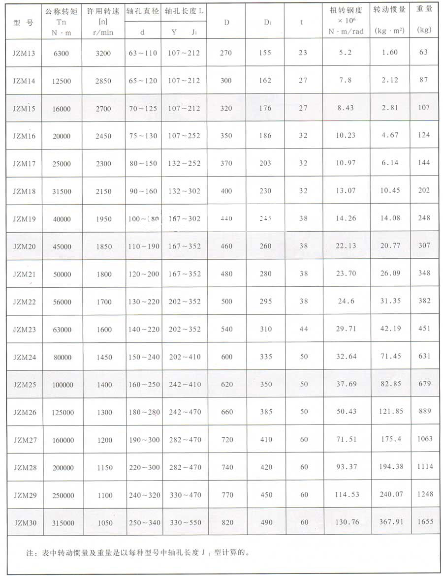 JZM型重型機械用膜片聯(lián)軸器 (JB/ZQ4717-98) 基本參數(shù)為: